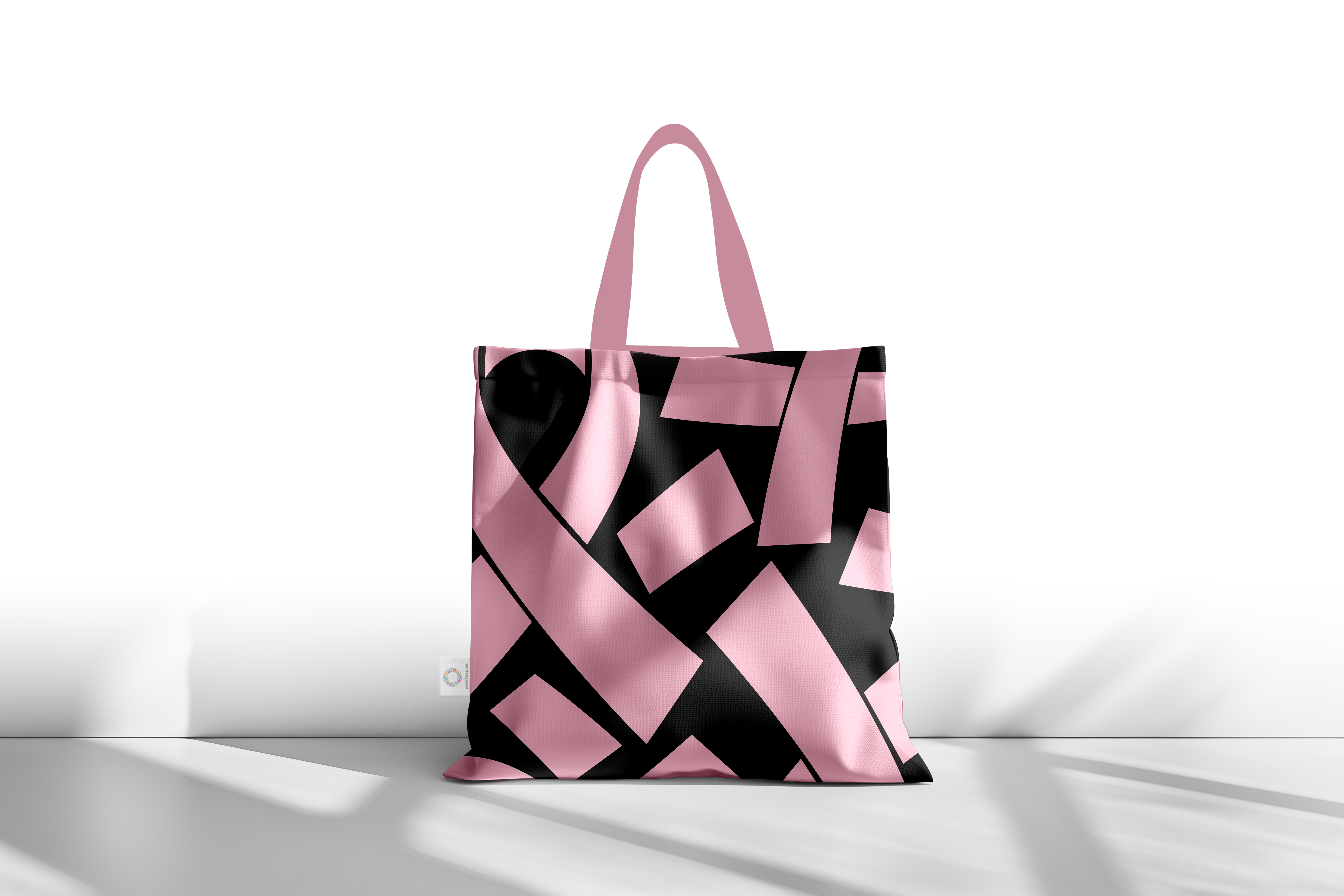 Stylish black tote with a unique design, supporting breast cancer awareness.