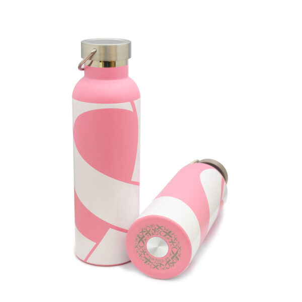 Sleek White and pink water bottle, perfect for staying hydrated while supporting breast cancer awareness.